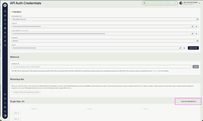 1. Simplified User Experience: Integrating Veryfi with your third-party identity provider or SSO service makes logging in simple and secure for your team. By logging into Veryfi API Portal using SSO, you eliminate some mental strain from needing to remember different passwords. By reducing the number of access points, using SSO also minimizes potential vulnerabilities, which forms a cohesive security front for Veryfi and the rest of your technology stack that’s easier to keep fortified.
