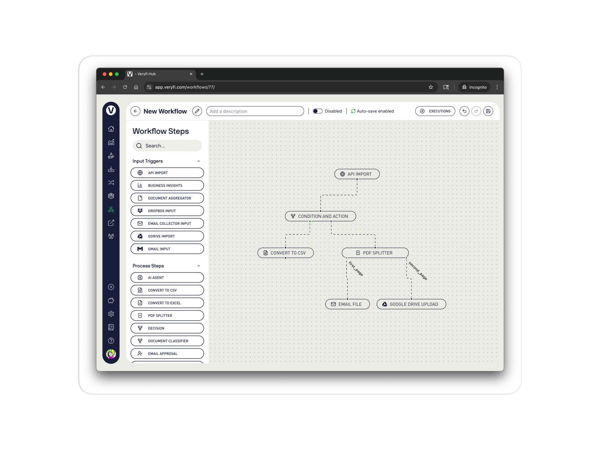 We have prebuilt interfaces and experiences for most of our APIs in the form of No-Code Solutions. This is just a fancy way of saying we wrapped our APIs with a friendly to use Interface so you can get started using AI today. Pictured below is Workflows but we also have Embedded, Expense Management App and The Vault available for you to use.