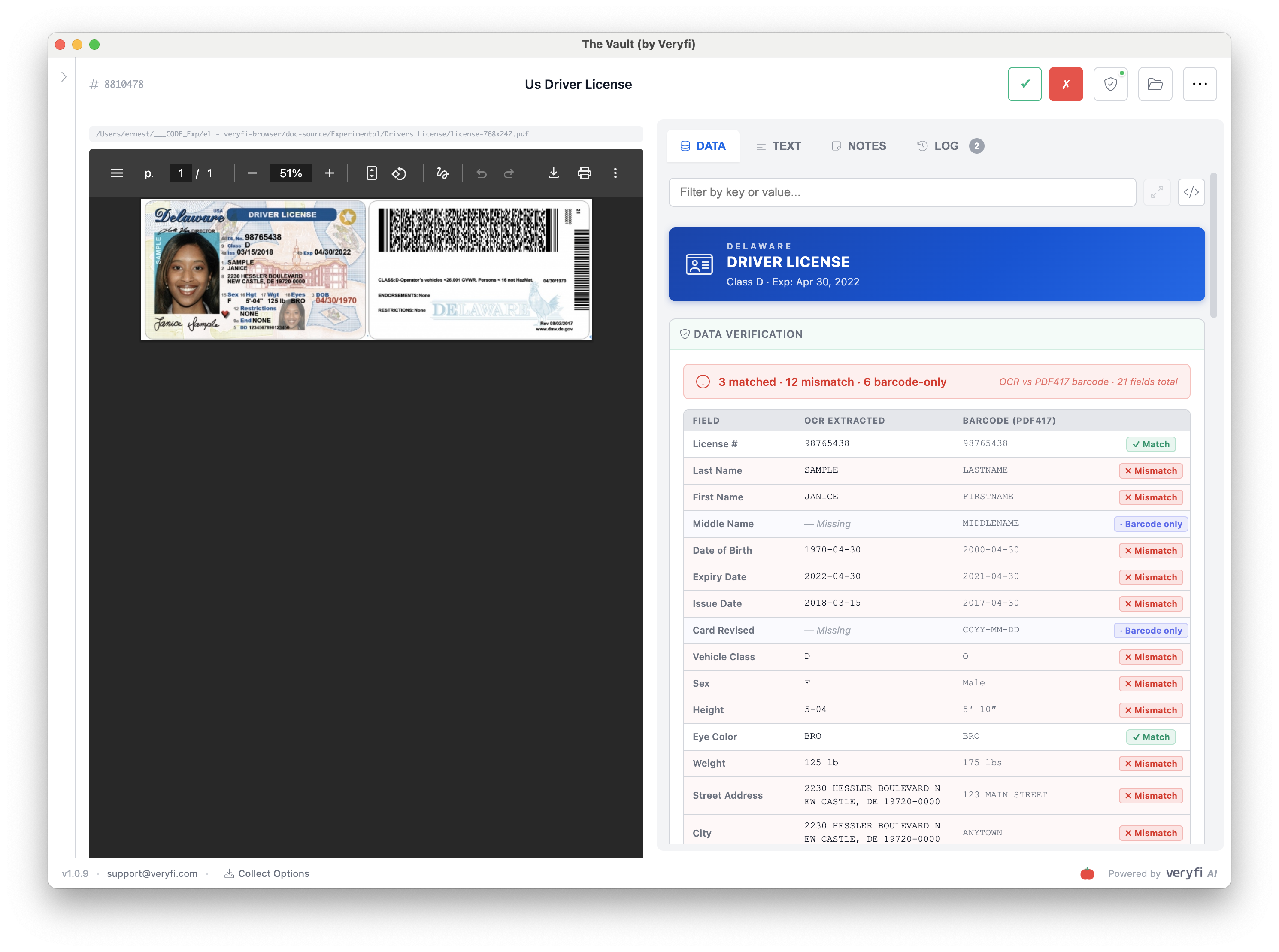 Veryfi’s Driver’s License OCR API instantly extracts structured data from all 50 states’ licenses with 99.4% accuracy, eliminating manual data entry and reducing verification time from 11 minutes to 1.2 minutes—634% faster than manual methods. Whether processing dozens of daily verifications or the 847,000 identity checks enterprise organizations handle annually, our machine learning technology scales effortlessly. Forward-thinking organizations across industries—from banks reducing KYC costs by 67% to healthcare systems cutting registration overhead by $1.8 million annually—gain competitive advantage through real-time, automated validation that delivers ROI within 2.1 months.