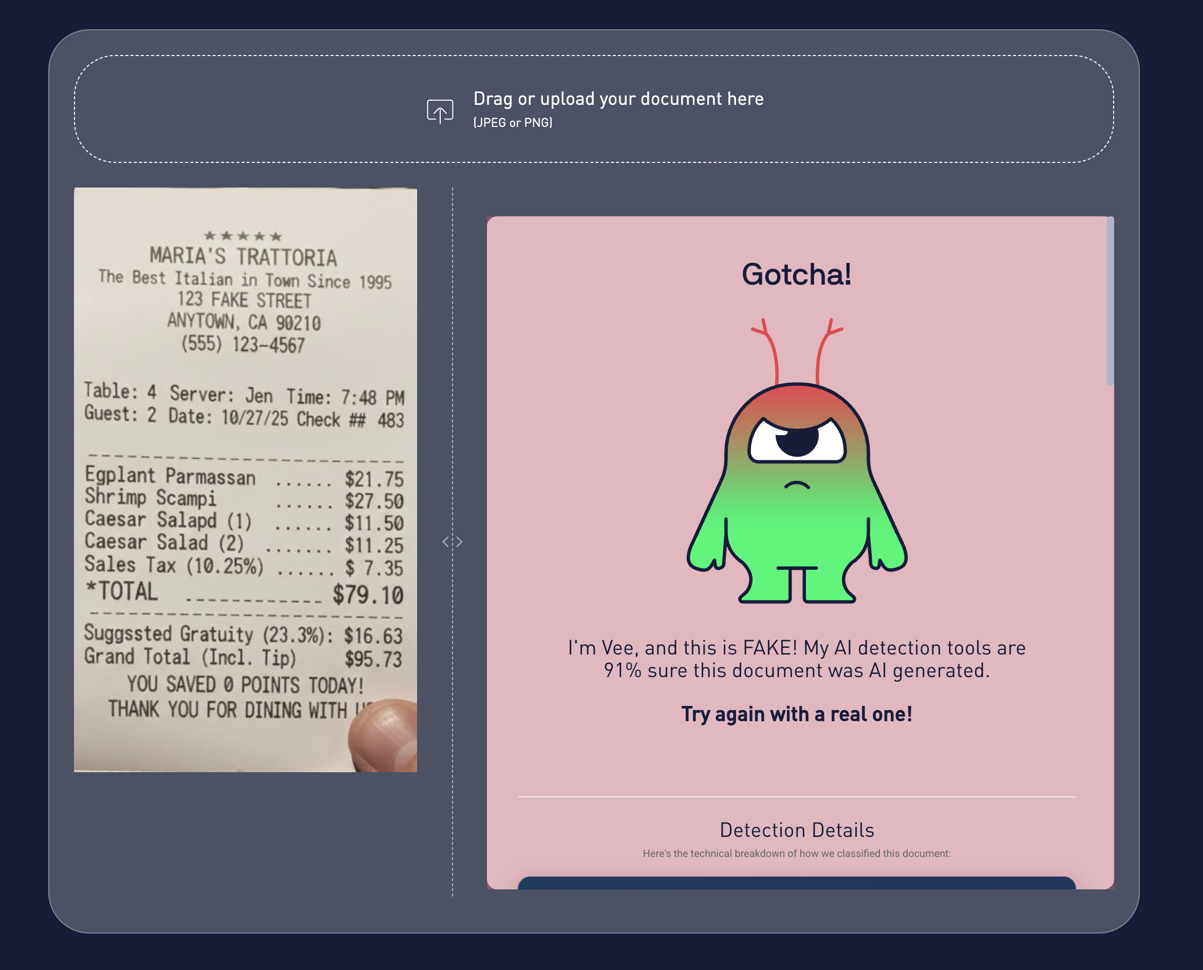 Curious whether your current processes can catch AI-generated receipts? Veryfi offers a free testing tool where you can upload suspicious documents and receive immediate feedback on whether they’re AI-generated. Visit veryfi.com/ai-generated-documents to try it with your own samples.